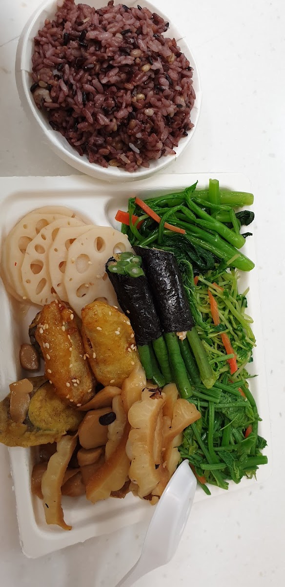 One of the standout dishes on the menu is the signature 盤菜 (Pan Cai), a flavorful and colorful platter filled with fresh vegetables, grains, and other plant-based ingredients. It’s a great choice if you're looking for a fulfilling meal that’s both nutritious and delicious. The vibrant mix of textures and flavors will leave you feeling satisfied without the heaviness often associated with traditional meals.